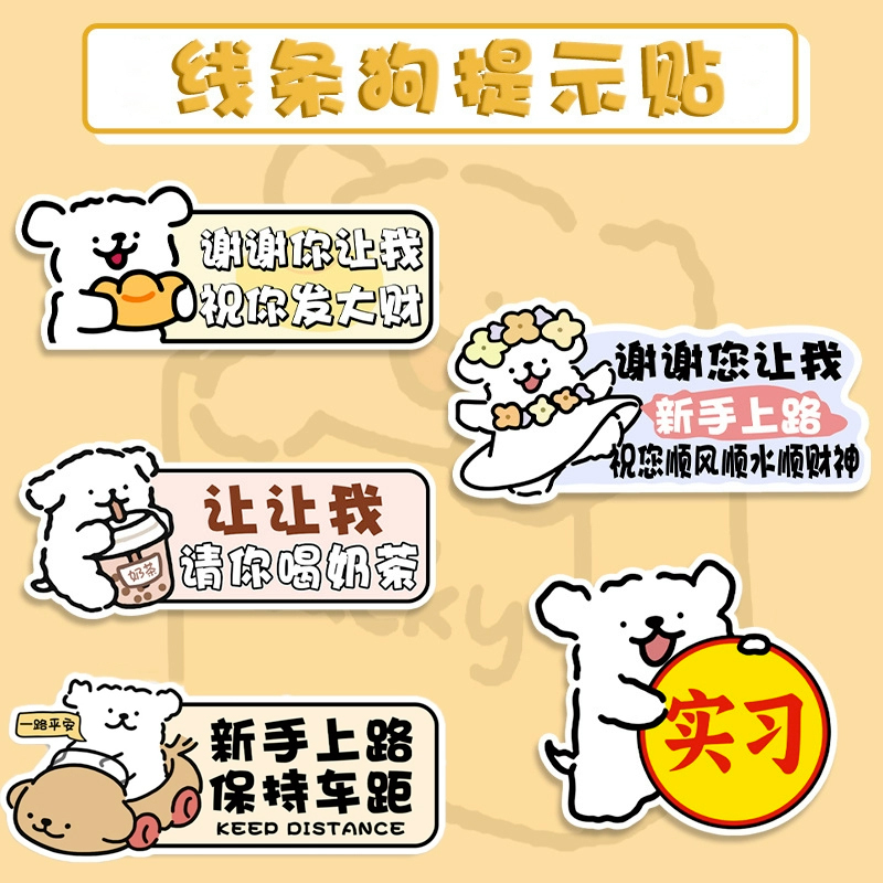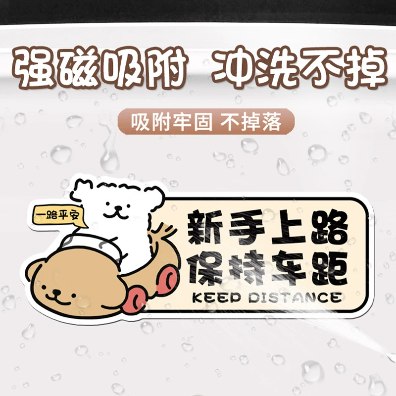 线条狗汽车新手上路实习车贴保持车距提示贴防水防晒磁吸车身贴纸