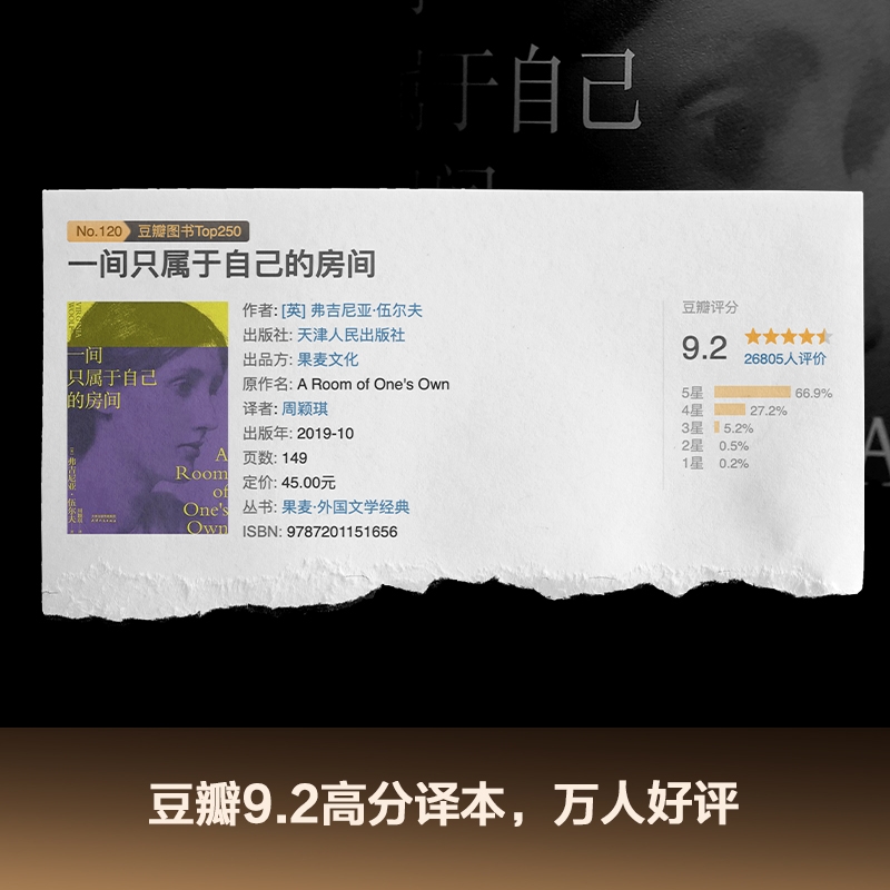 伍尔夫代表作一间只属于自己的房间精装李银河推荐的七本女性主义奠基作品之一豆瓣9.2高分译本激发无数觉醒的经典之作文学小说