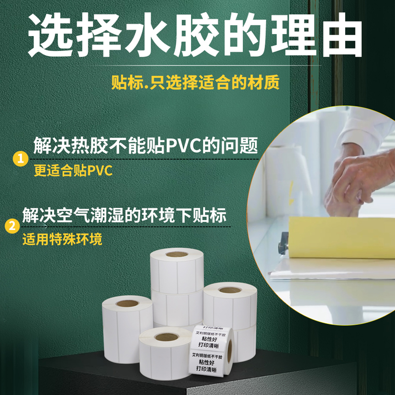 艾利水胶三防热敏标签纸不干胶条形码打印热感应打标机外卖奶茶店条码价格签贴纸整卷背胶电子称空白模切定制