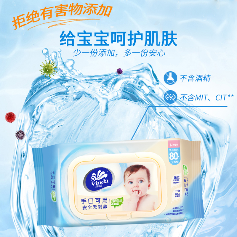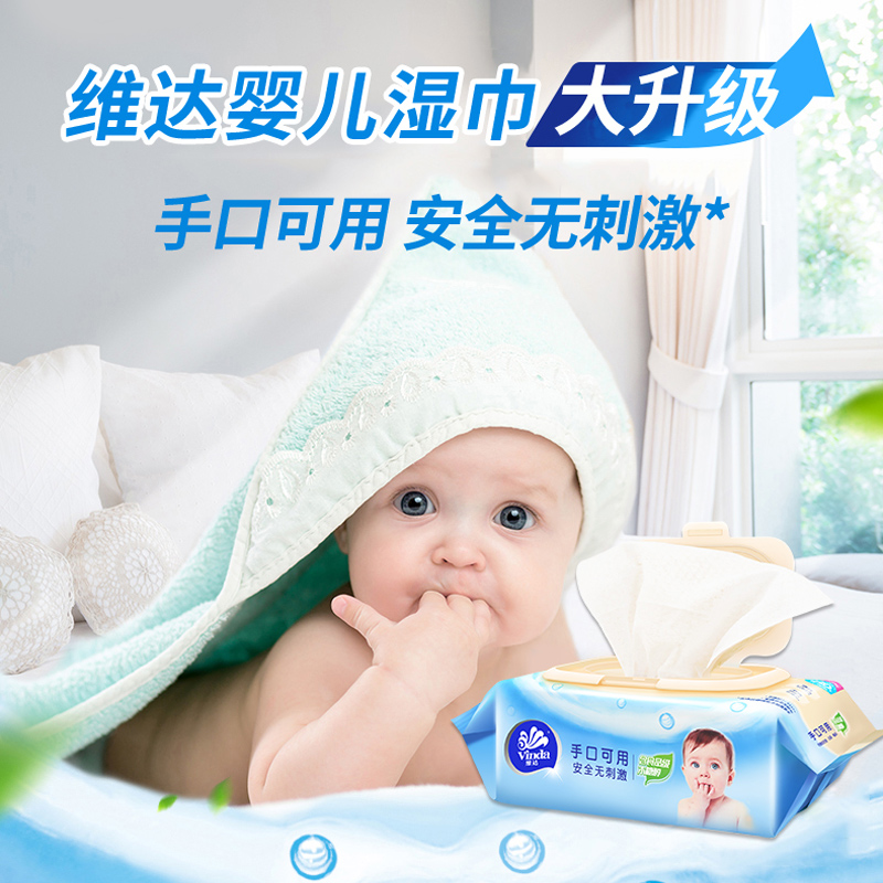 维达木糖醇婴儿湿巾新生宝宝手口专用湿纸巾家用大包装无酒精80片