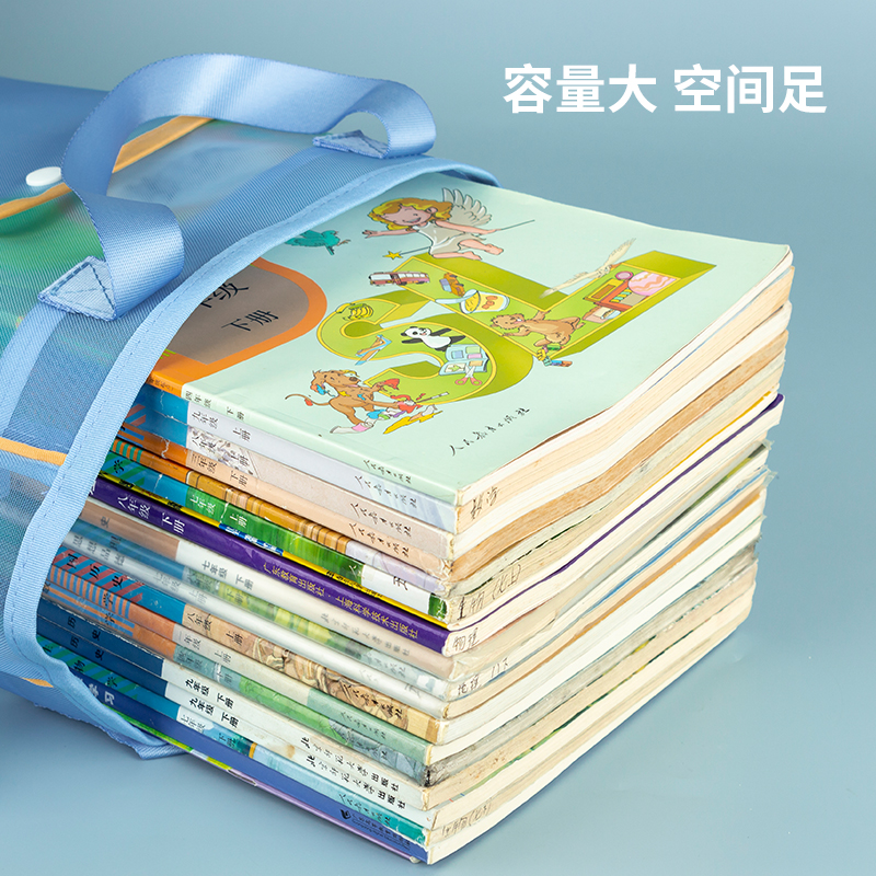 欧力益超轻空气补习袋透明网纱加厚儿童男女生斜挎包小学生补课包拉链式耐脏手提拎书单肩大容量外出美术书袋