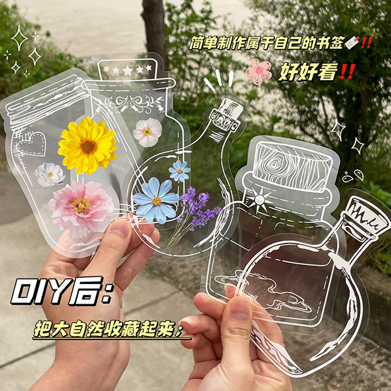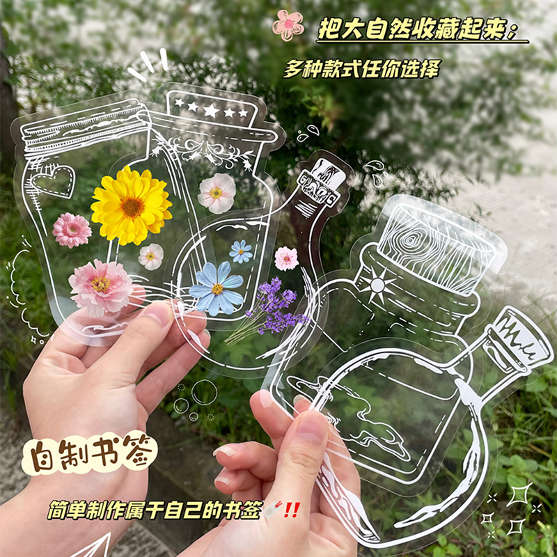 干花书签标本塑封膜瓶子里的春天收集手工diy六一儿童节礼物透明贴纸玻璃瓶制作树叶粘贴画纸幼儿园自制压花