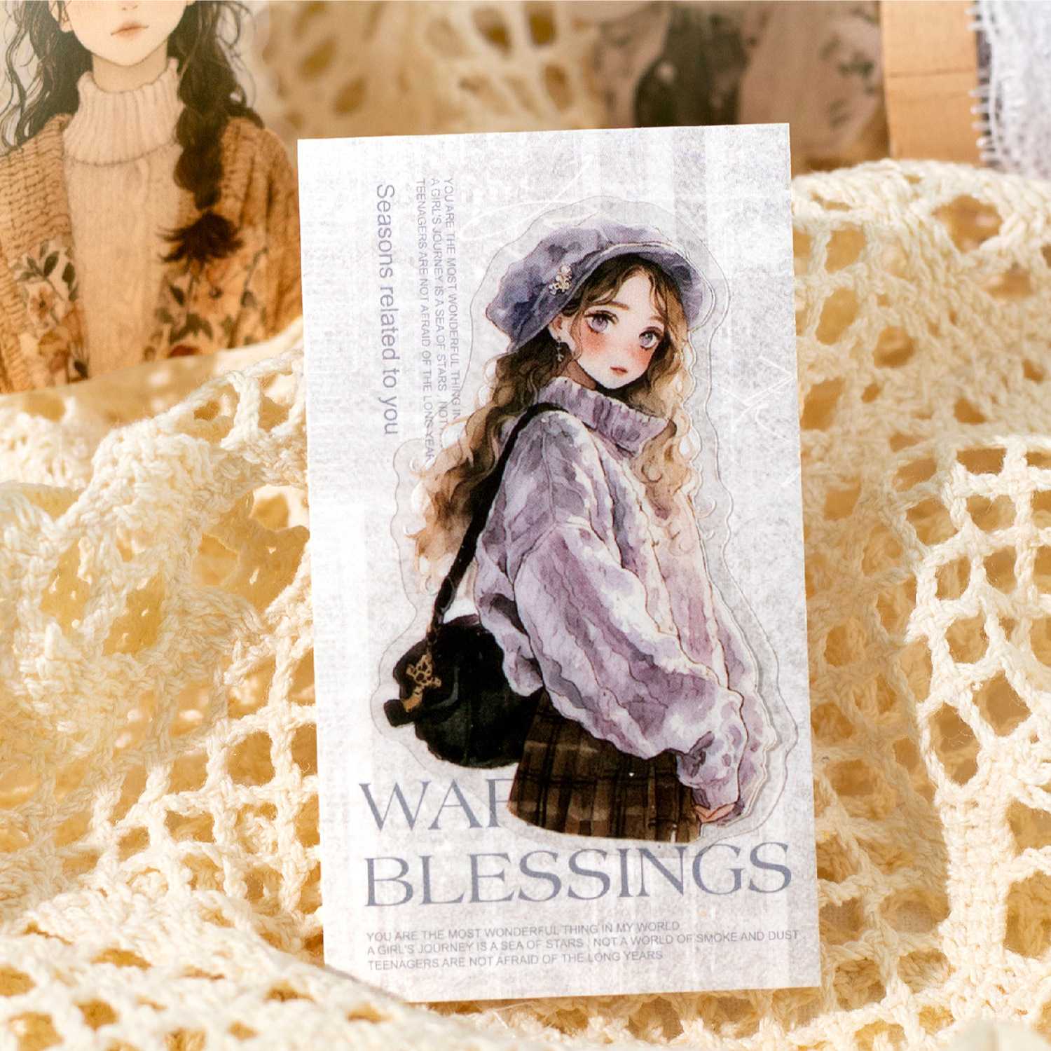 15张防水PET贴纸包 与你有关的季节系列 轻复古人物手帐装饰素材