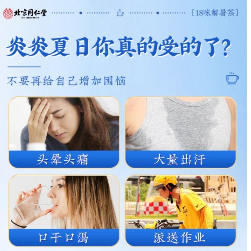 北京同仁堂解暑茶夏季清热防中暑薄荷凉茶降温火三伏天清凉包