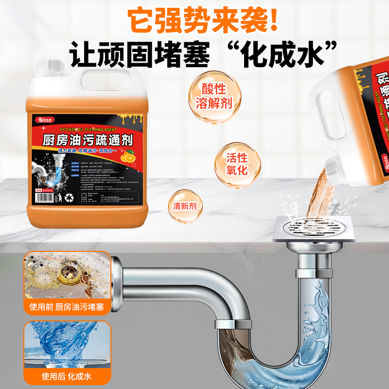 厨房下水道油污疏通剂强力去油脂溶解管道剂神器洗菜盆下水管堵塞