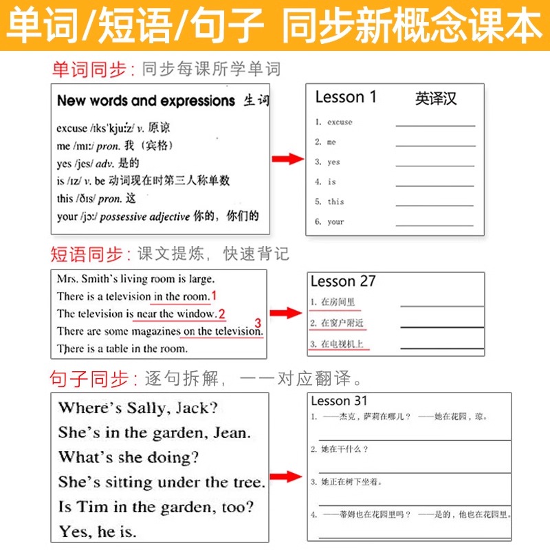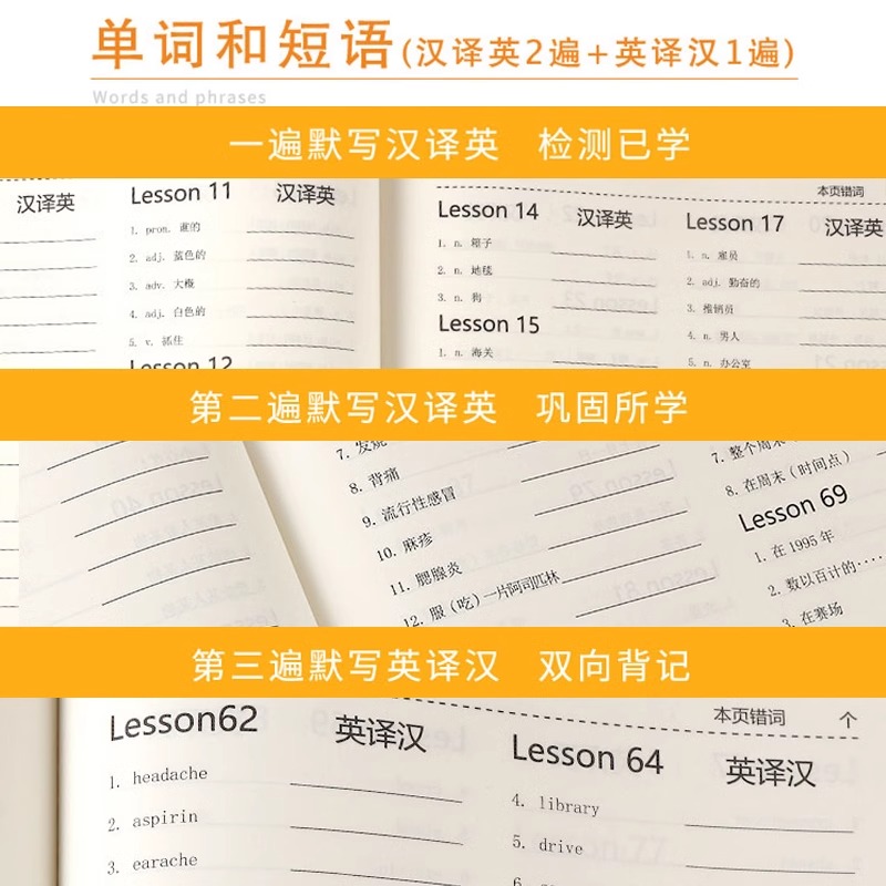 新概念英语1一册单词默写本1-2-3-4册全套短语句子练习本一课一练成人版小学生初中同步训练英汉互译作业本
