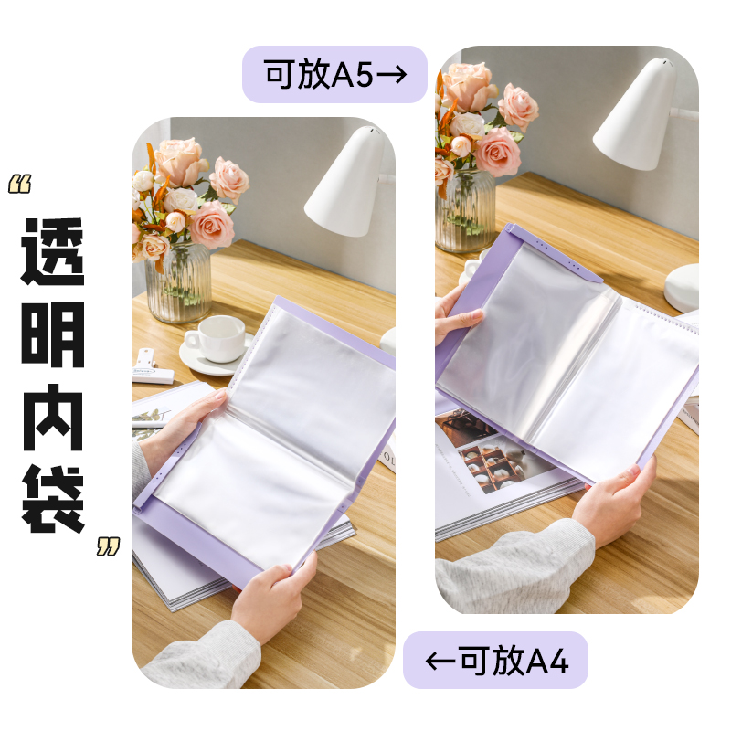 得力文件夹a4资料册透明插页档案夹收纳册文件袋档案整理办公用品合同夹试卷活页夹产检孕检乐谱夹奖状收集册