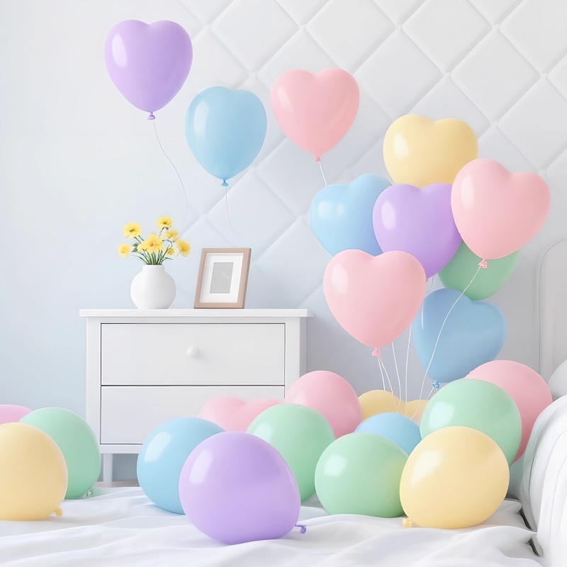 马卡龙粉色爱心形气球飘空公主风装饰表白求婚女孩生日仪式感布置