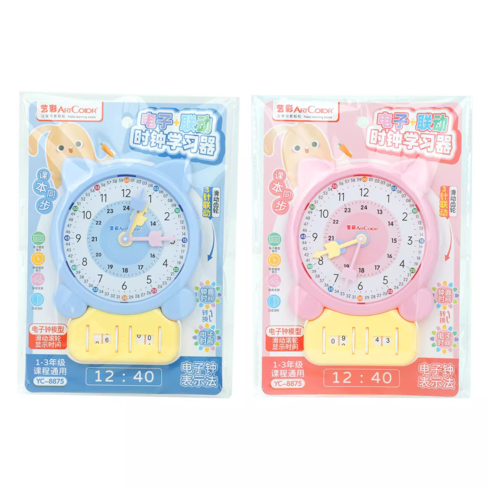 新款钟表模型教具三针联动带电子时间显示电子钟表示法儿童蒙氏数学时钟认知学具小学生一二年级认识时间教具