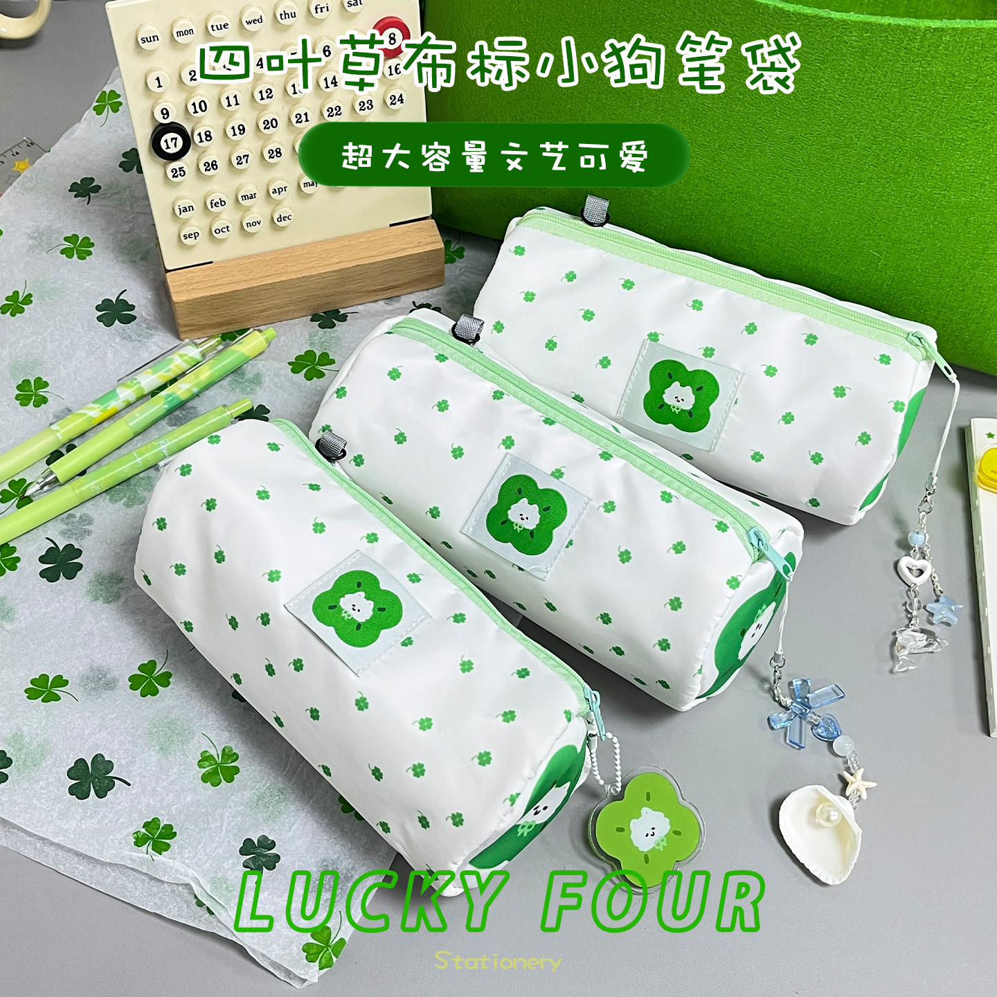 新款中小学文具盒四叶草笔袋多巴胺大容量学生文具收纳袋铅笔盒女