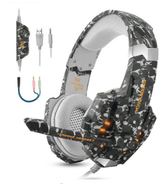 因卓 G9600迷彩色头戴式耳机 电脑游戏吃鸡耳机 有线发光 PS4耳机