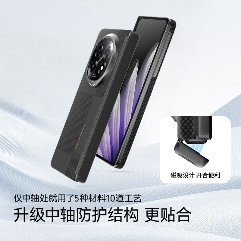 决色适用于oppofindn5手机壳新款超薄findn5折叠屏凯夫拉芳纶碳纤纹中轴铰链全包磁吸高级商务男OPPO保护套壳
