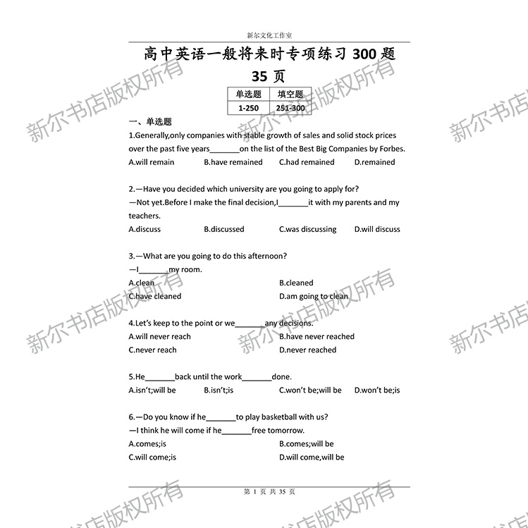 高中英语一般将来时专项练习300题通用版高考高一二三含解析96页