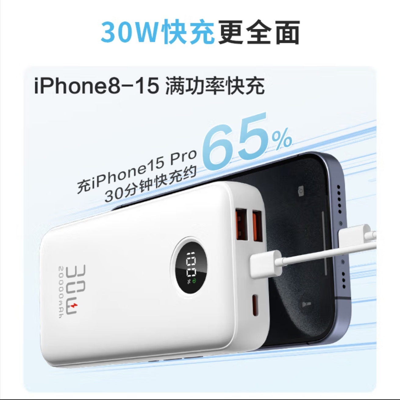 以旧换新| 3C认证充电宝丨品胜2025新款20000毫安大容量22.5W超级快充便携自带双线移动电源适用苹果可上飞机