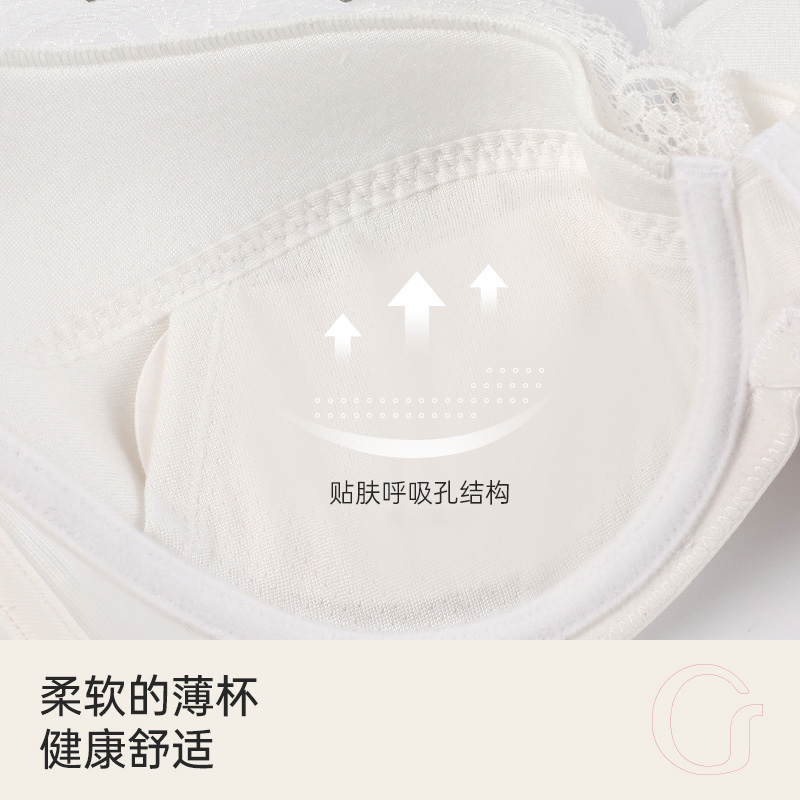 古今内衣女透气棉杯插片带钢圈聚拢花卉蕾丝上薄下厚调整型胸罩