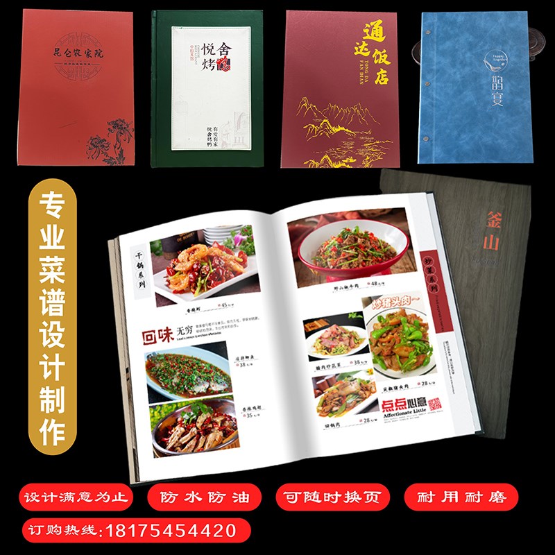 定做菜谱设计制作菜谱订做活页菜单设计定制菜单换页菜谱外壳