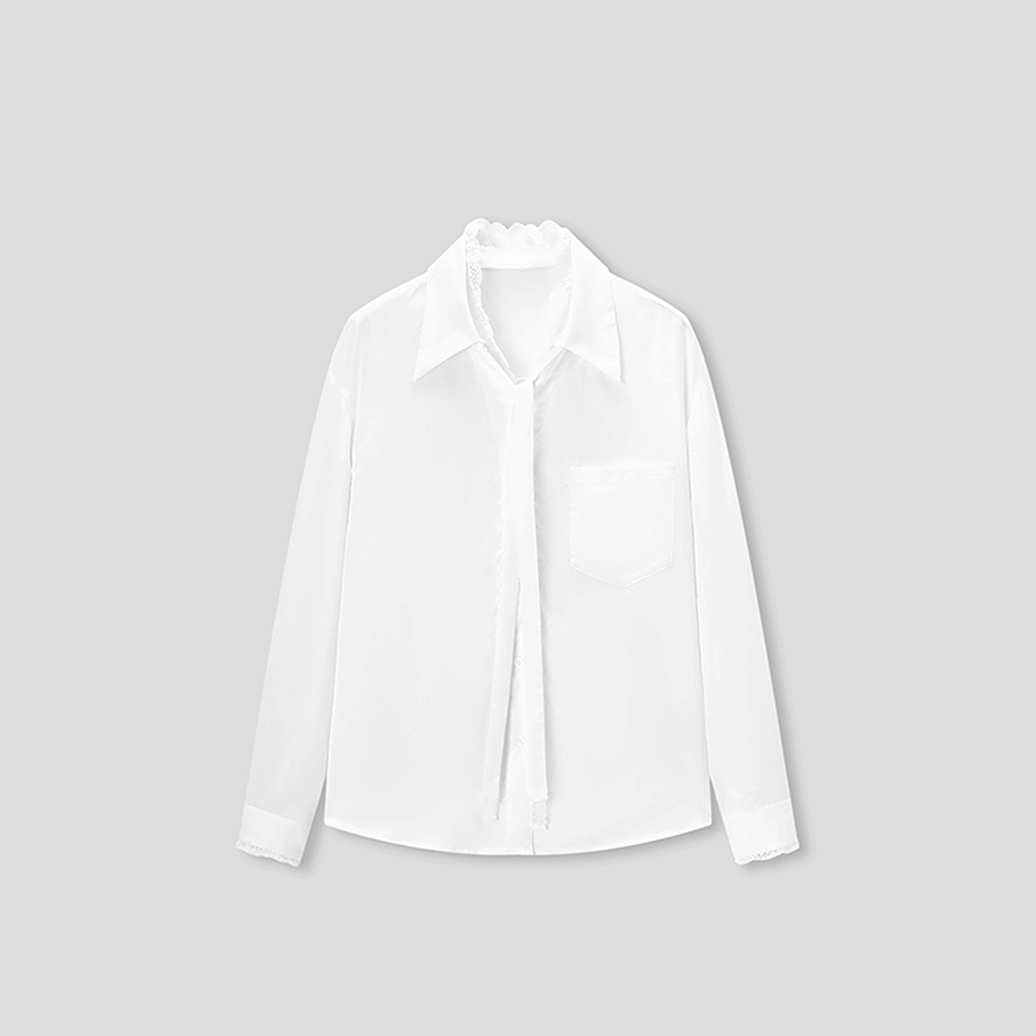 爱居兔宽松休闲长袖衬衫女2025年秋季新款蕾丝拼接含飘带通勤上衣