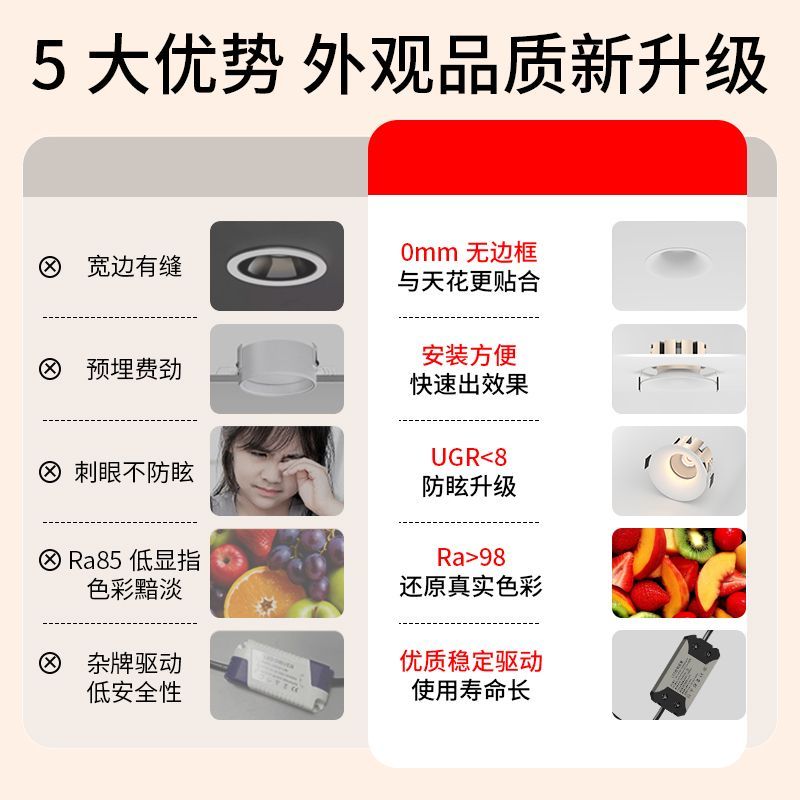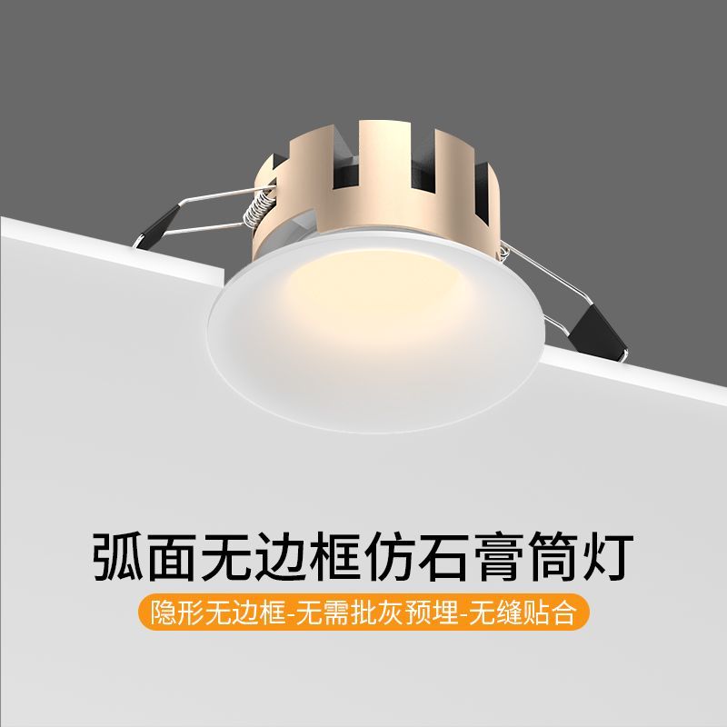 全光谱无边框小山丘射灯cob天花灯嵌入式深防眩弧面非预埋led筒灯