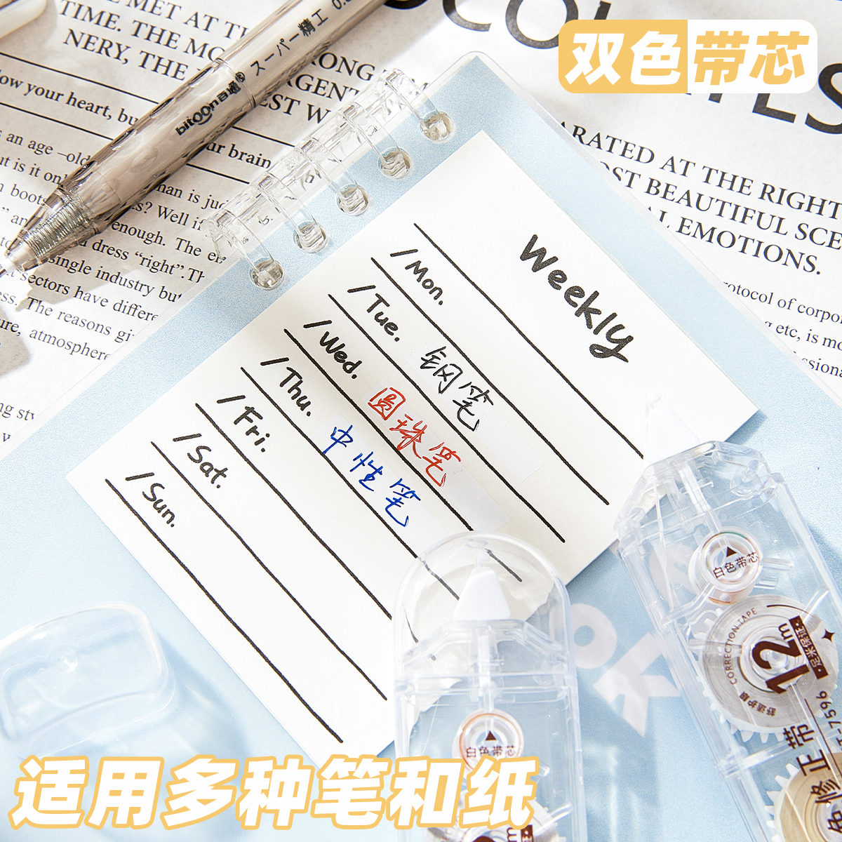 修正带学生用涂改带双头双色护眼型改正带米黄色+白色双拼改错字修错带无印风学生大容量改写带顺滑不断带