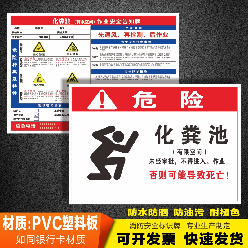 化粪池有限空间作业安全告知牌受限空间作业危险告知牌池污水处理池储罐化废气喷淋塔消防水池安全警示标识牌