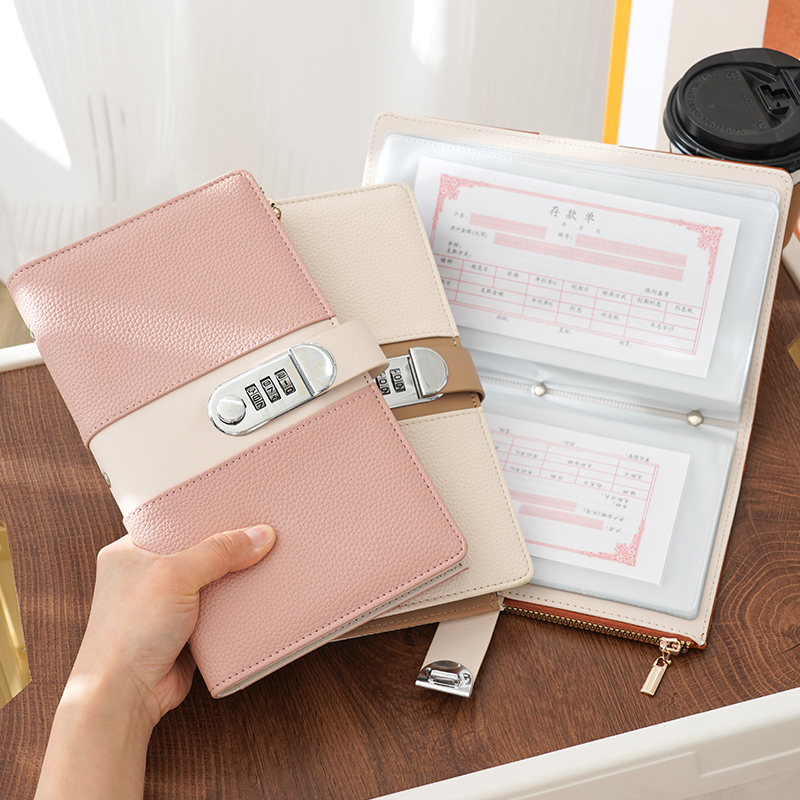密码锁存单收纳本票据收纳册家庭现金理财存折定期银行存单夹皮质多功能存单夹纪念机票收藏册票据夹存款收纳