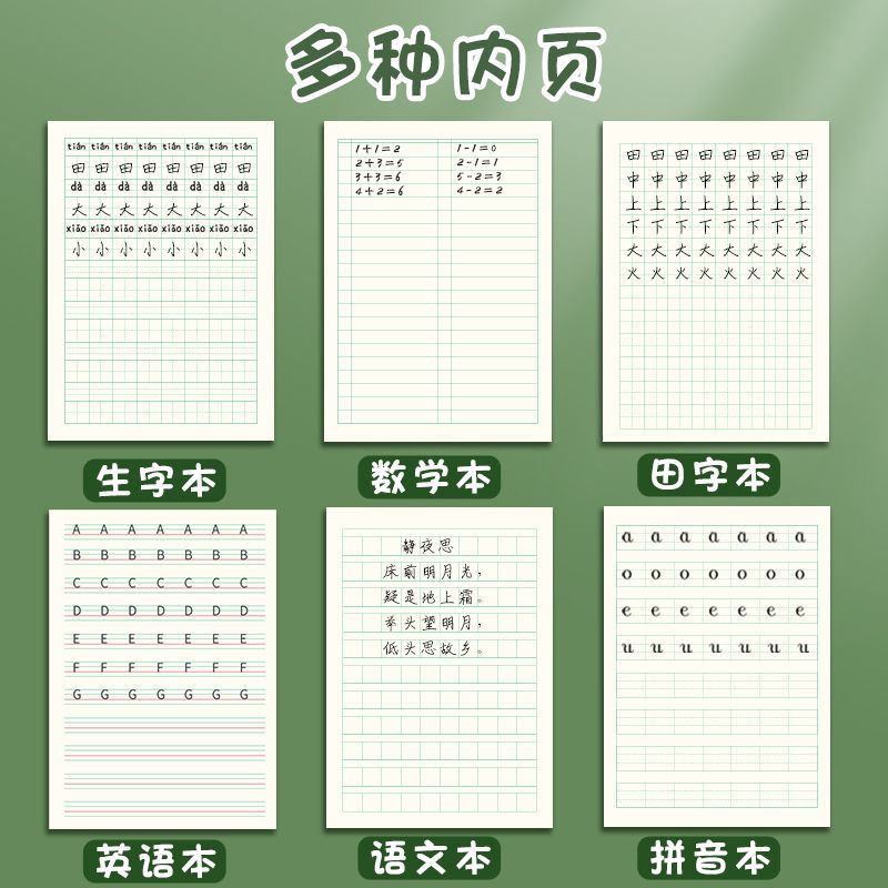 36k小学生护眼统一标准作业本田字格拼音幼儿园英语加厚小号生字本写字语文数学本一二年级练习本批发