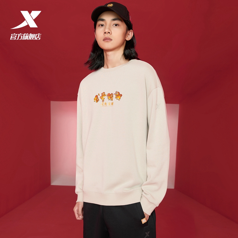特步新年款丨八方来财卫衣男2025春秋圆领套头衫百搭宽松男款上衣