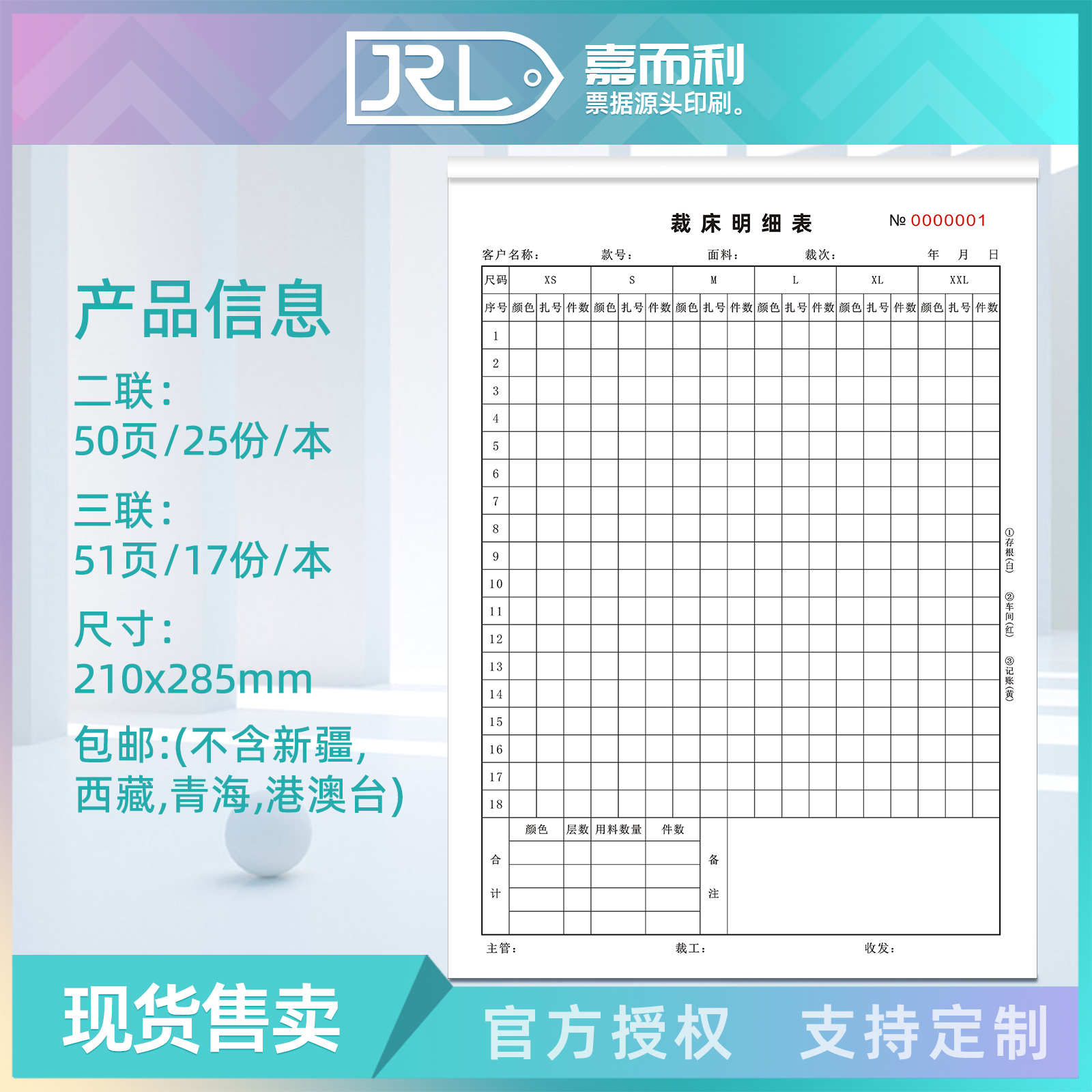 裁床生产明细表三联服装厂布料分类单定制印刷裁剪报表二联裁床单