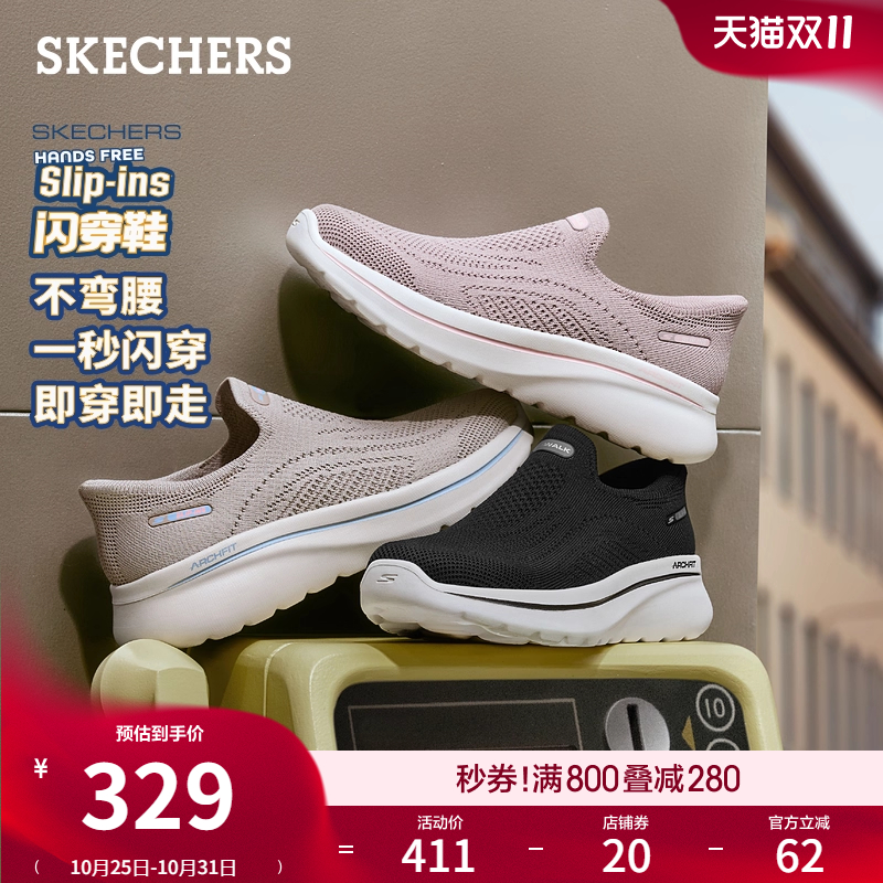 斯凯奇闪穿鞋|秋新款男女鞋一脚蹬足弓支撑健步鞋脚宽脚胖休闲鞋