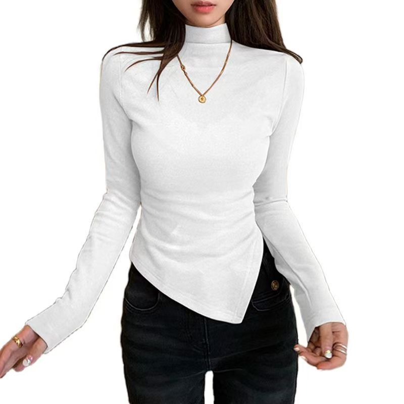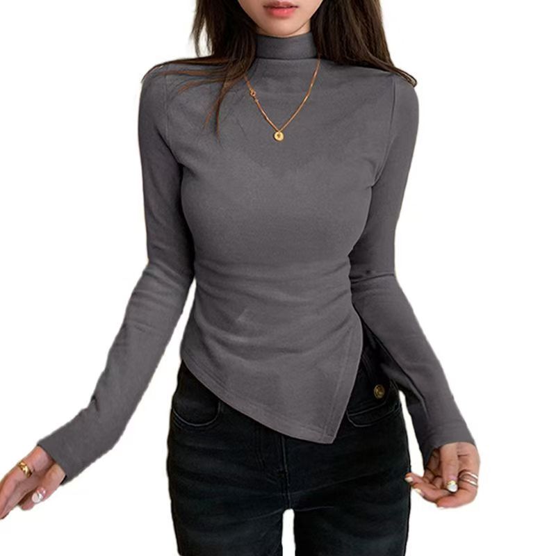 德绒半高领内搭打底衫女秋冬不规则大码正肩辣妹长袖t恤修身上衣A