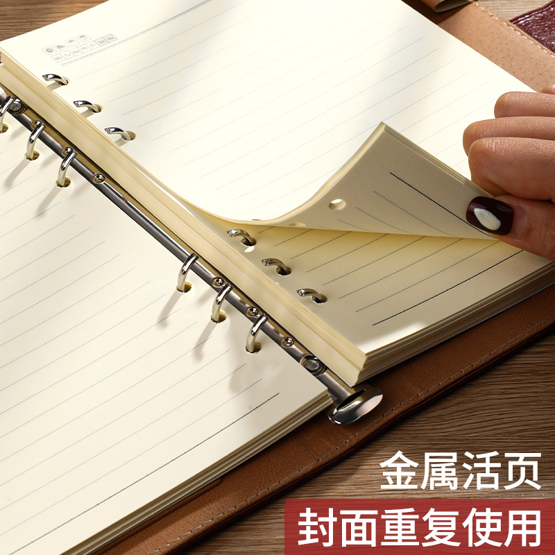 现货速发活页子商务复古办公精致皮面搭扣记事本加厚活页夹带环可