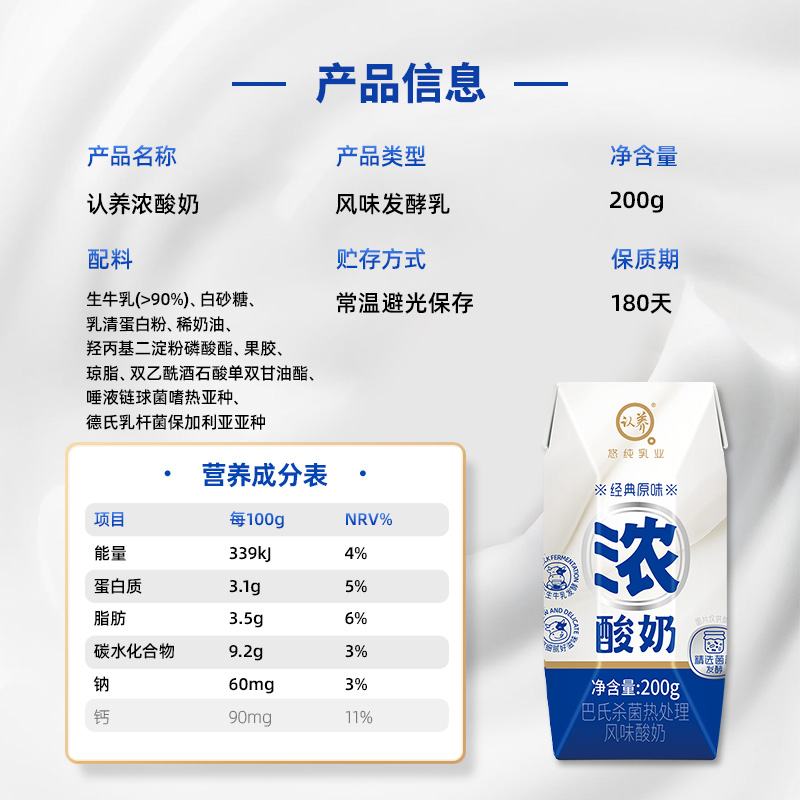 认养浓酸奶200g*10/20盒原味酸奶礼盒早餐酸奶生牛乳发酵酸牛奶