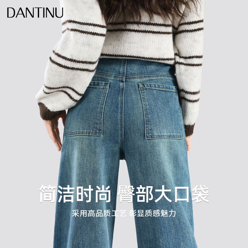 浪莎孕妇牛仔裤秋外穿2025新款孕妇裤子丹宁蓝阔腿裤不勒肚子秋装
