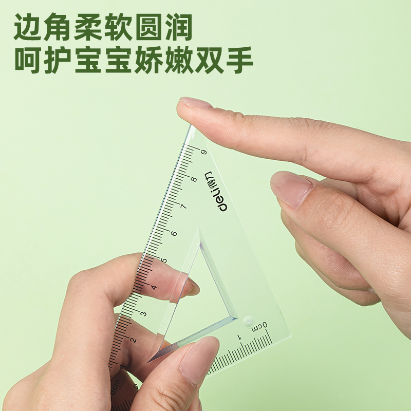 得力软尺子套装小学生套尺20cm波浪线直尺量角器三角板四件套15cm儿童学生文具多功能三角尺三件套