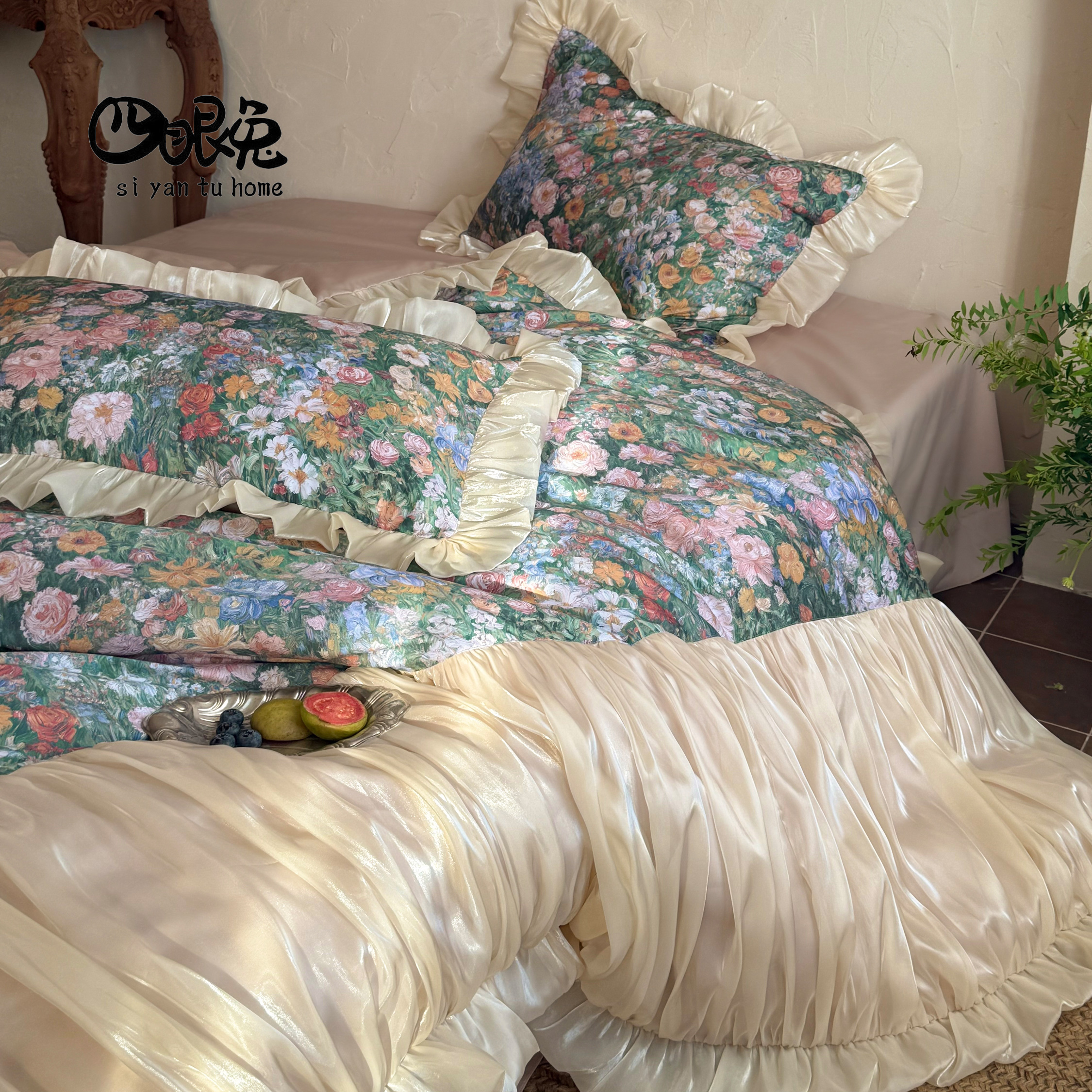 繁梦花绮︱法式复古油画感全棉长绒棉四件套纯棉琉璃纱边被套床品