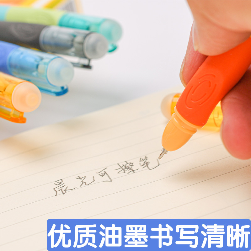 晨光热可擦笔3-5年级小学生用摩易擦笔正姿全针管0.5mm练字晶蓝黑色可爱卡通男女生优握热可擦中性笔笔芯正品