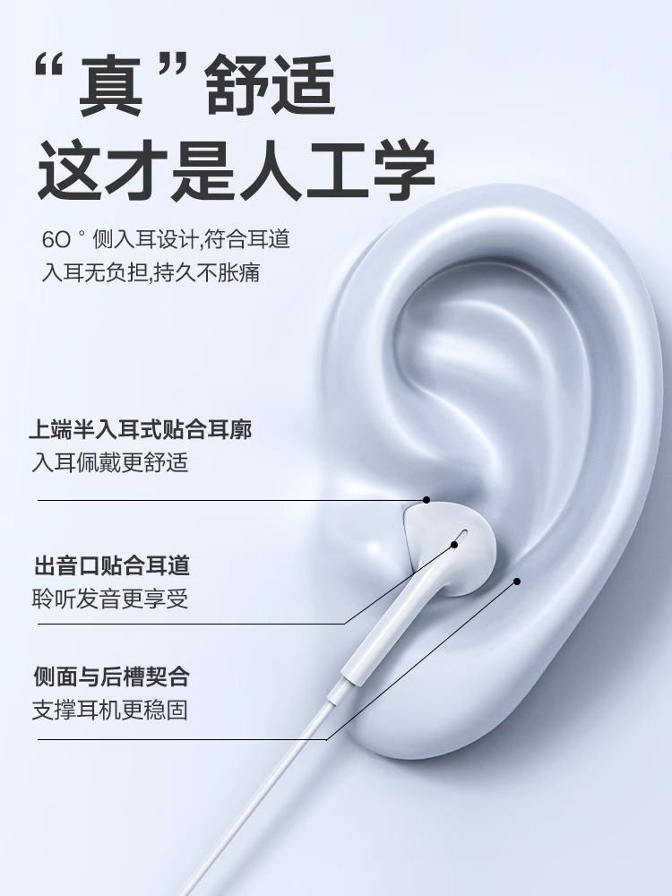 typec接口耳机有线半入耳式带麦克风高音质带麦久戴不痛耳麦加长