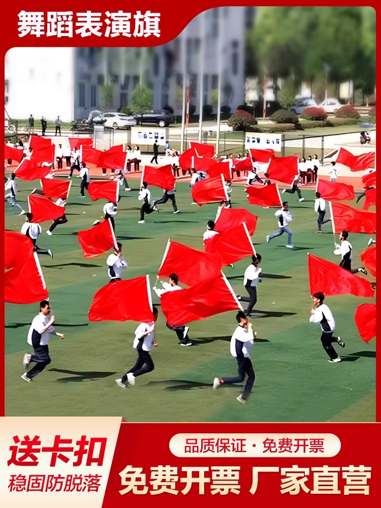 红黄双面旗舞蹈旗体操旗舞蹈道具旗表演旗方阵旗运动会旗带杆课间操表演甩旗手摇旗儿童学生跳舞旗红旗带杆