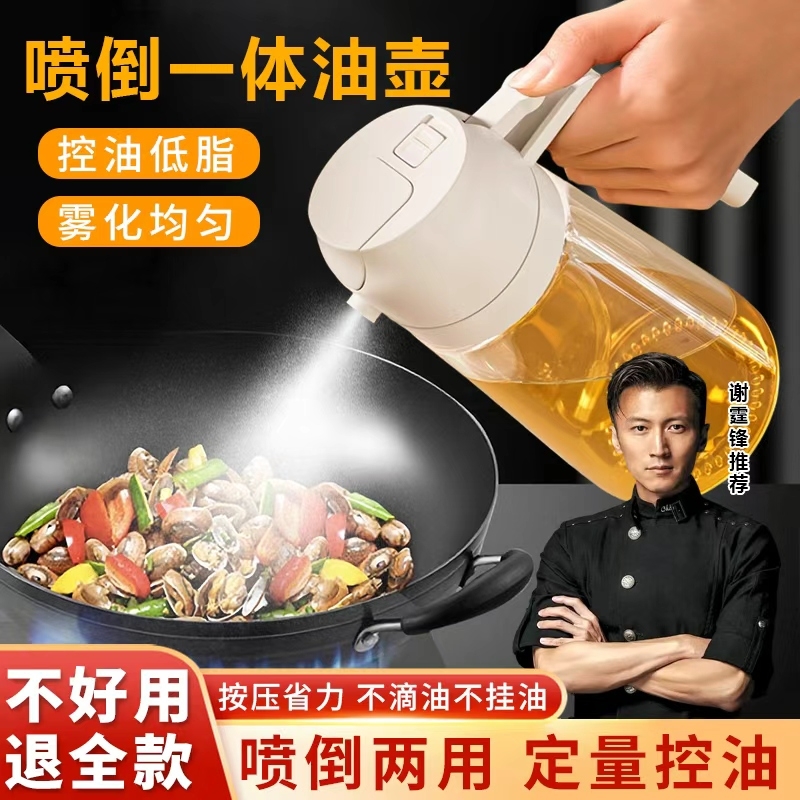 喷油壶厨房家用食品级喷倒两用喷壶油罐不挂油玻璃油瓶密封难挂油