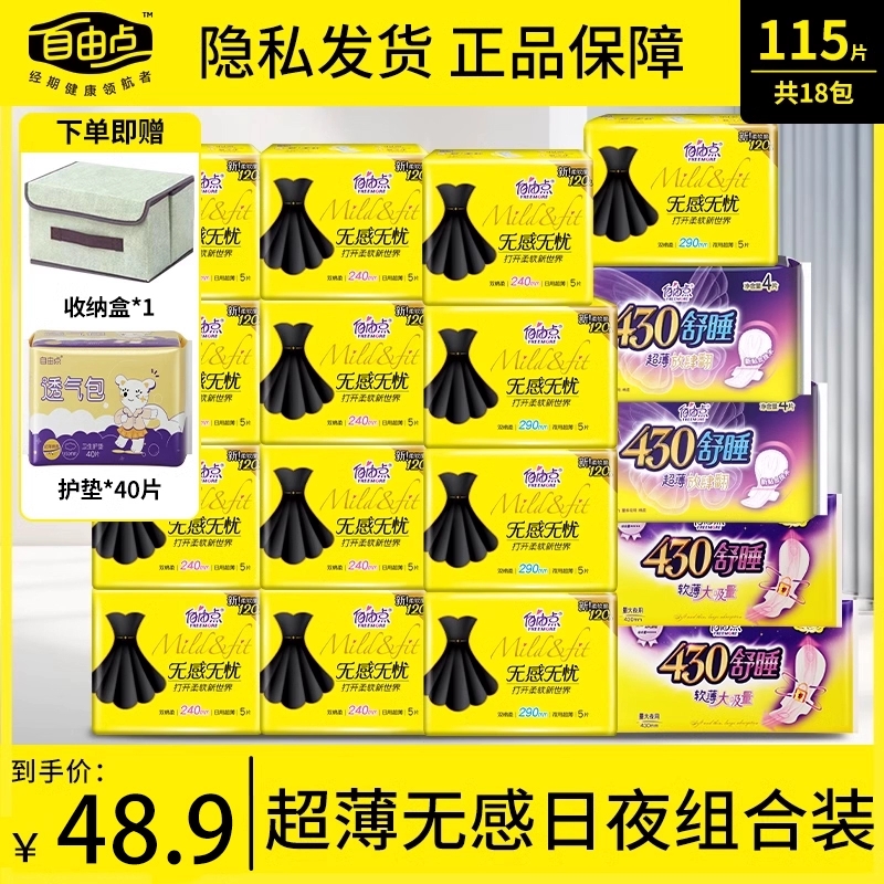 自由点卫生巾超薄组合装日用夜用姨妈巾女学生官方旗舰店正品加长