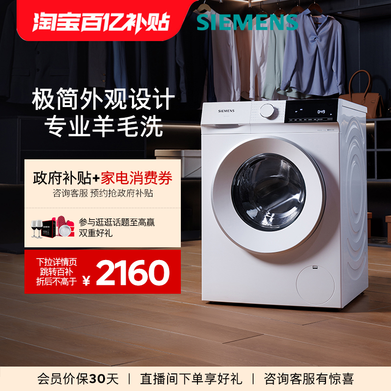 【蓝宝石】西门子10公斤滚筒全自动智能除渍洗衣机1U00/1U10