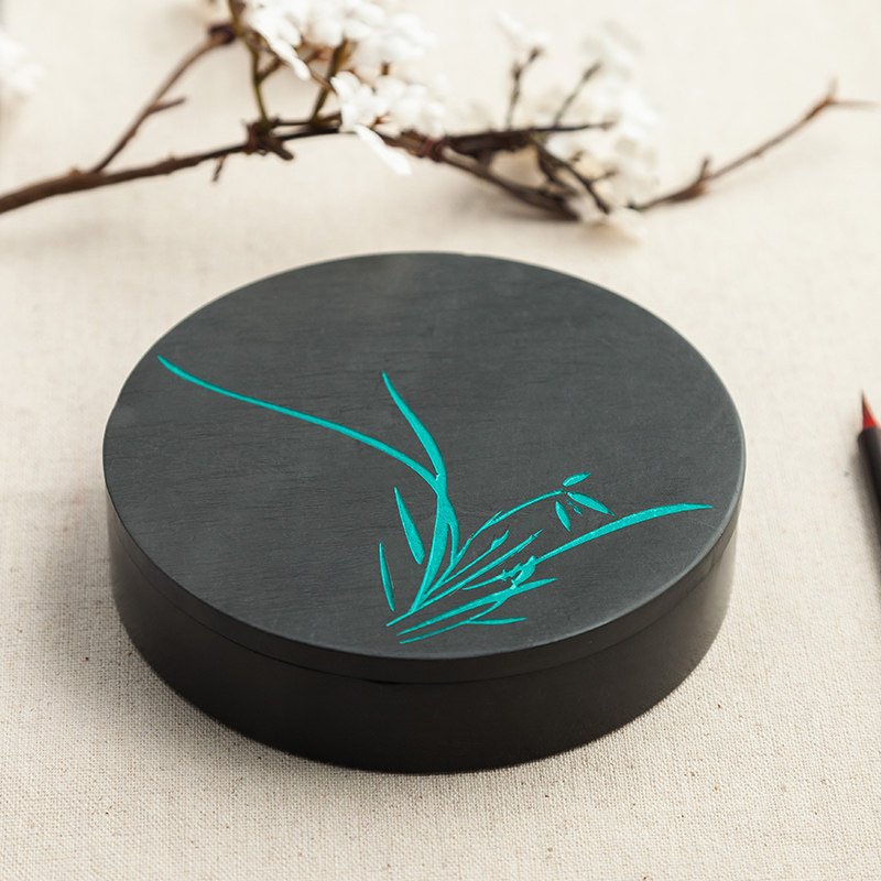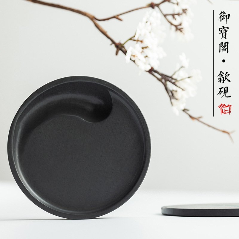 歙县太极砚原石端砚墨盒砚台带盖 初学者书法用品5寸墨池学生歙砚