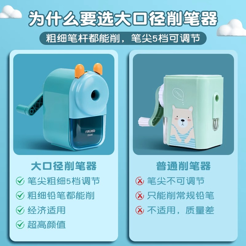 得力卷笔刀大口径手摇转笔刀小学生专用特粗洞洞笔加粗铅笔削笔器铅笔刀儿童粗杆美术生铅笔素描削笔刀削笔机