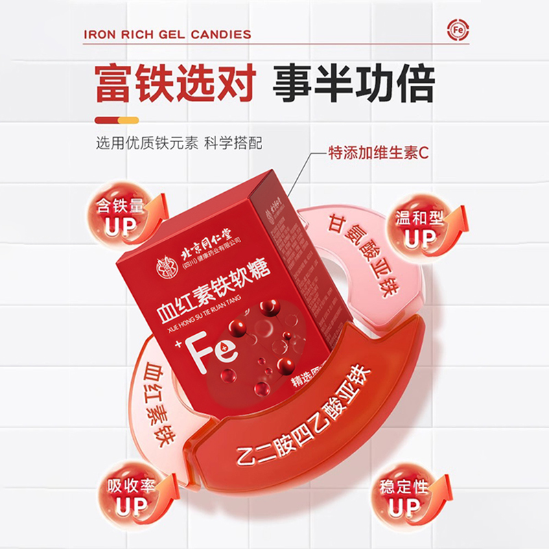 北京同仁堂补铁富铁软糖女性孕妇补贫血剂补铁软糖官方旗舰店正品