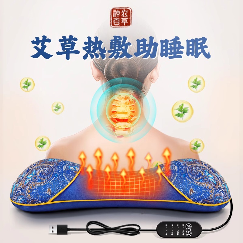 电加热艾草颈椎枕艾灸热敷护颈椎非助睡眠热敷包加热艾绒枕头秋冬