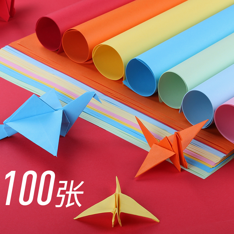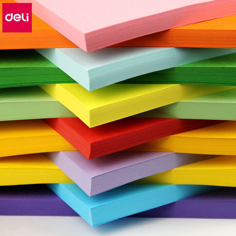 得力a4彩纸打印复印纸折纸材料粉混色儿童手工纸红色制作折花幼儿园彩色卡纸大张多功能一包100张千纸鹤叠纸