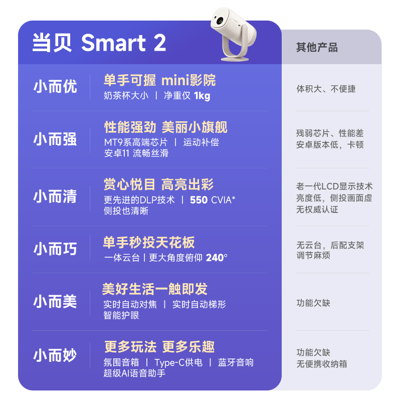 【全新上市】当贝Smart2投影仪家用超高清轻薄激光电视卧室便携智能投影机