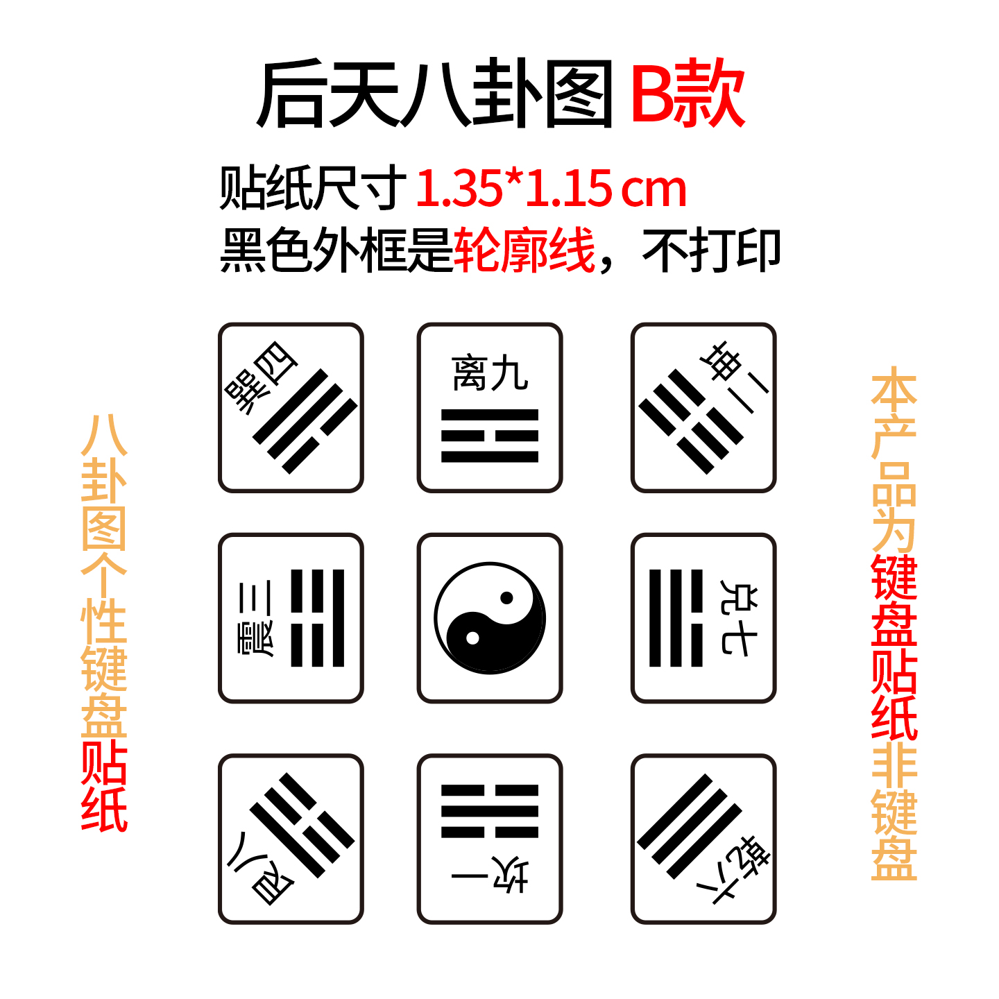 个性键盘贴纸后天八卦图pvc磨砂可定制不留胶防磨耐刮 电脑按键贴