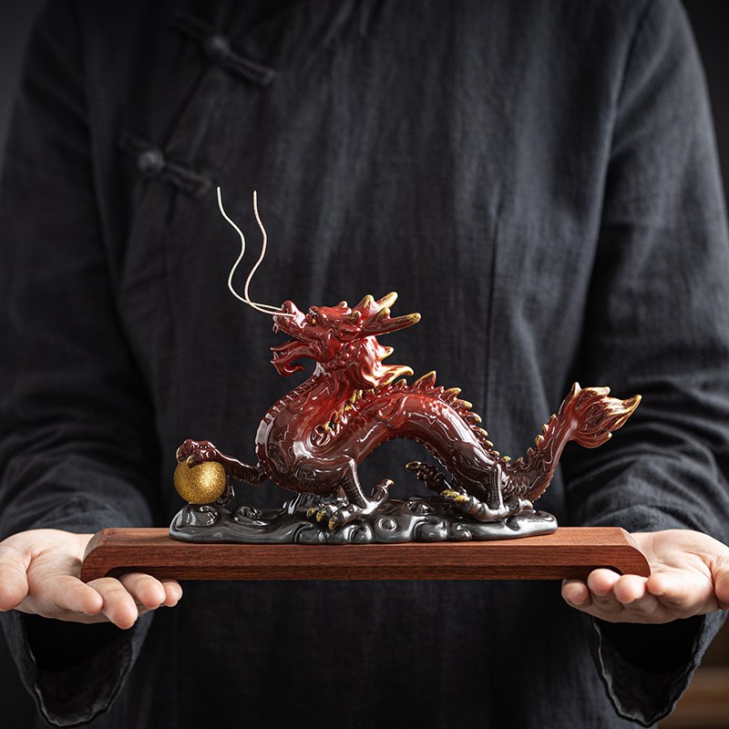 陶瓷龙五爪金龙青龙十二生肖龙客厅办公室家居装饰工艺品摆件汉龙