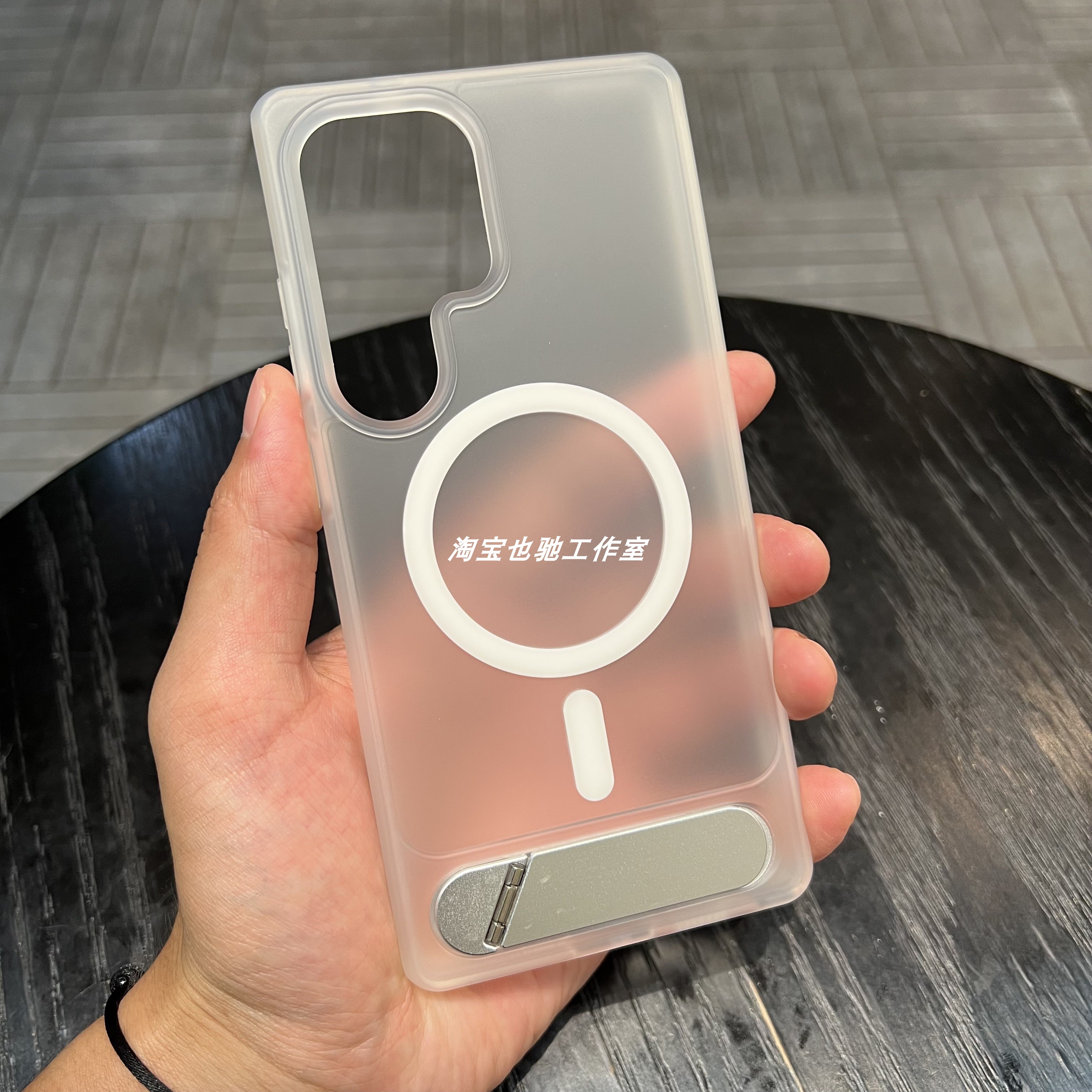 磨砂半透明白色磁吸隐藏支架适用三星S23U手机壳三星GalaxyS24Ultra保护套s25u全包防摔S25Ultra简约s24u男女